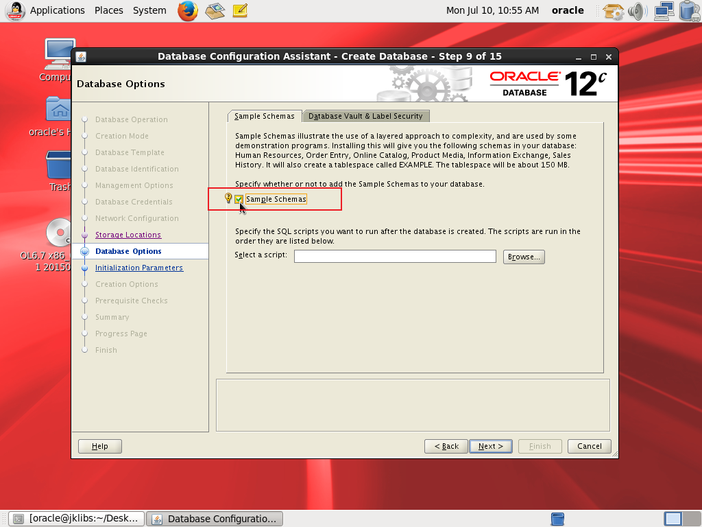 - 数据库存储文件系统, 默认使用文件系统, 还有一个 ASM, 自动存储管理, 以后介绍. 这里默认即可.