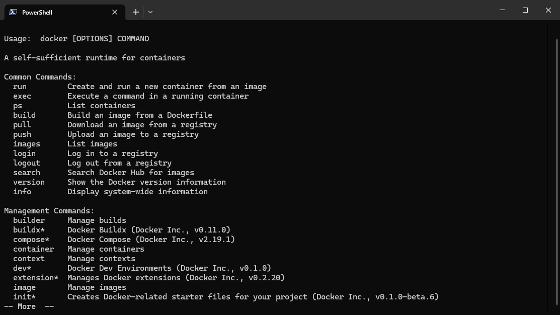 首先是最常用的 help 命令, 它列举可用的子命令, 并使用 docker <subcommand> --help 来查看细节.